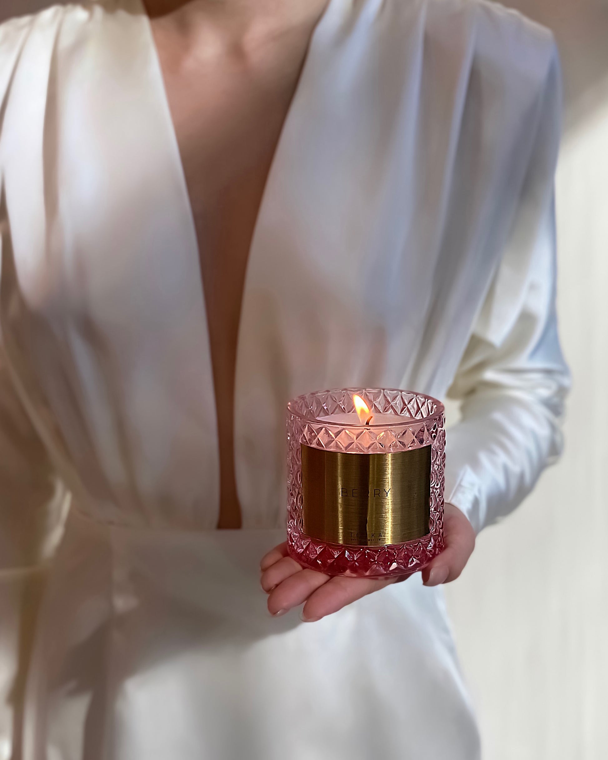 A romantic, warming berry cocktail reveals the very soul of ripe fruits, charging you with solar energy and making your heartbeat faster. The juicy taste of strawberry pulp is harmoniously emphasized by sparkling citrus shades of grapefruit, orange and bergamot. Opening up, the refined aroma of delicate Grasse rose petals contrasts with the hot breath of black pepper and spicy cloves, and the enveloping sound of smoky guaiac wood, Madagascar vanilla and viscous caramel leaves a sweet aftertaste. Captivating from the first breath, the aroma plunges you into blissful languor and fills the house with a magical atmosphere of love.